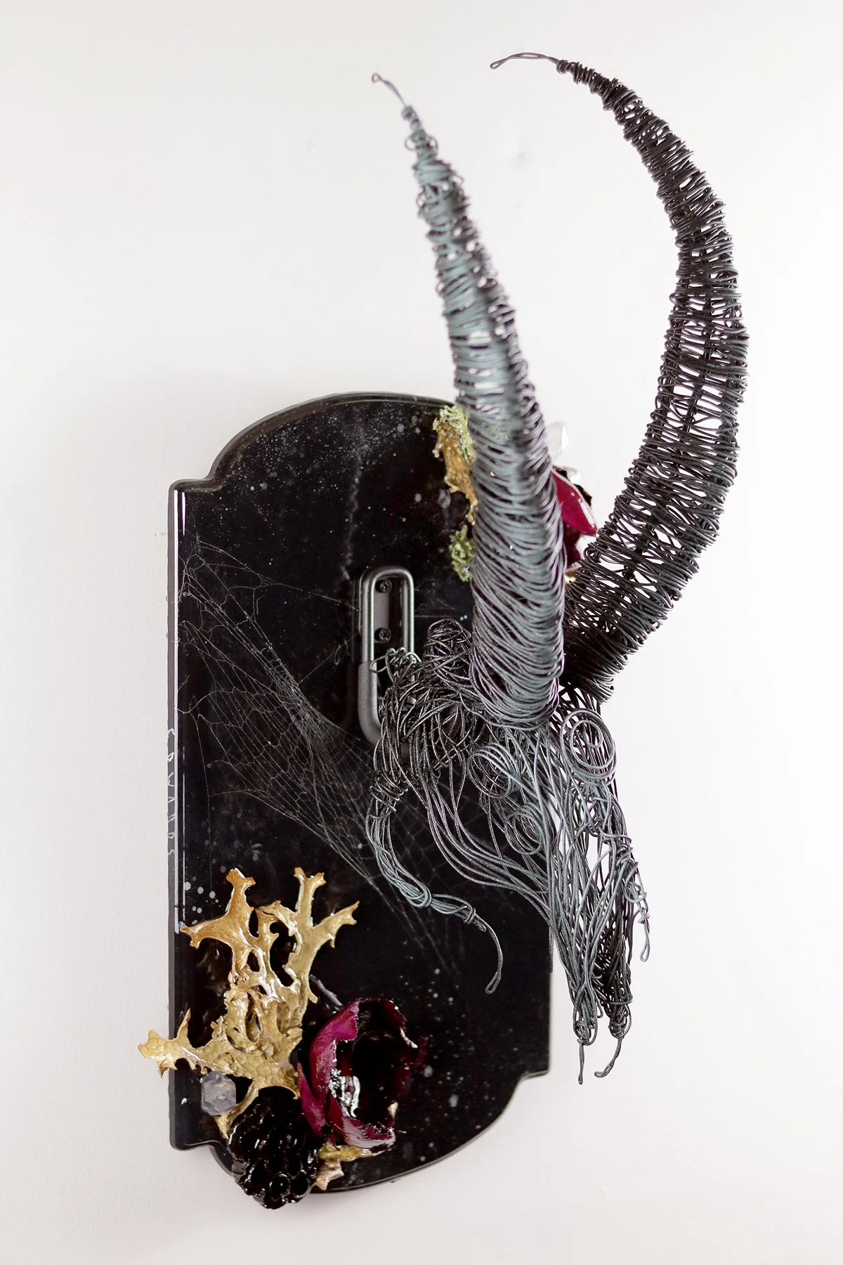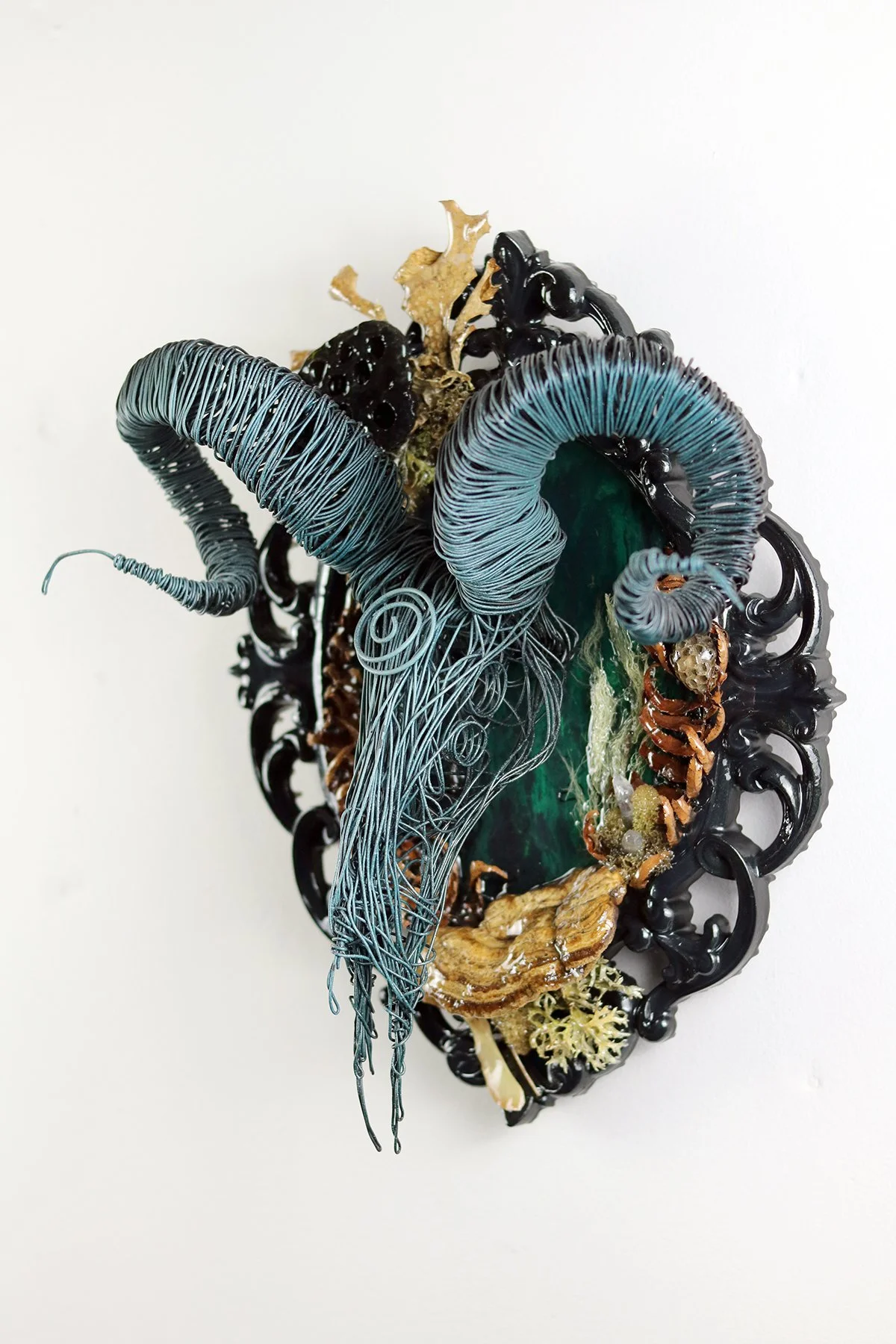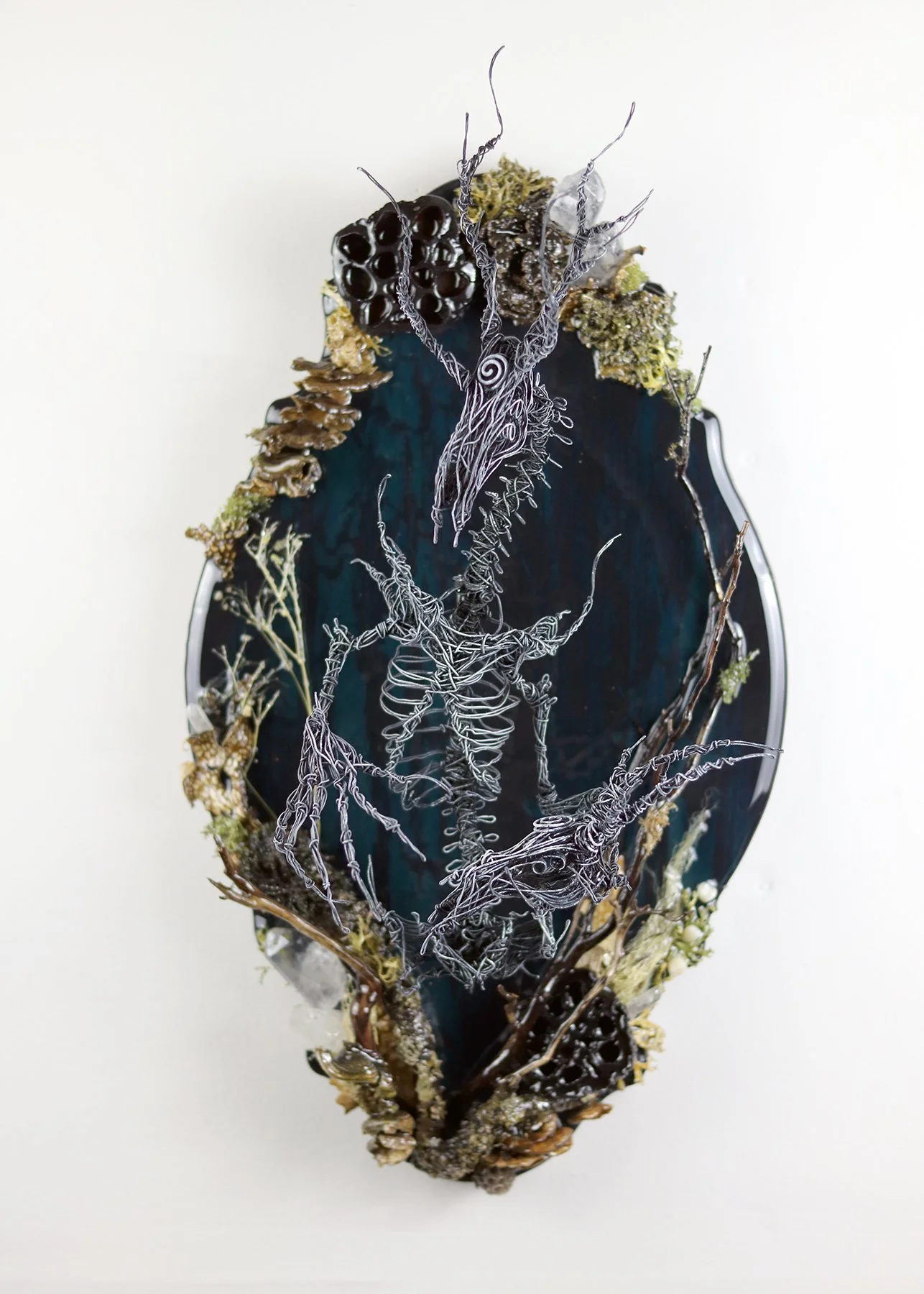 Surrealist wire sculpture & assemblage mounts. A non-animal ossuary of cryptid taxidermy.