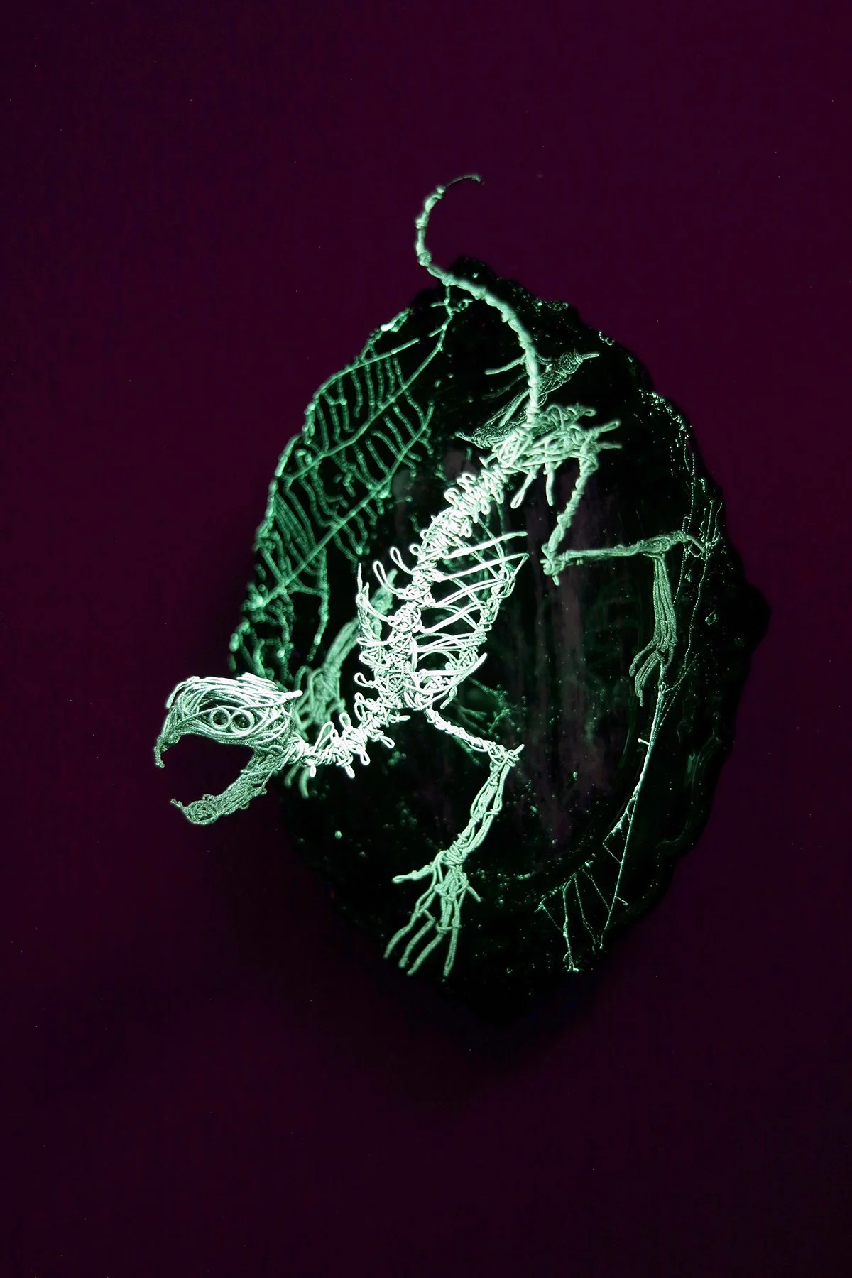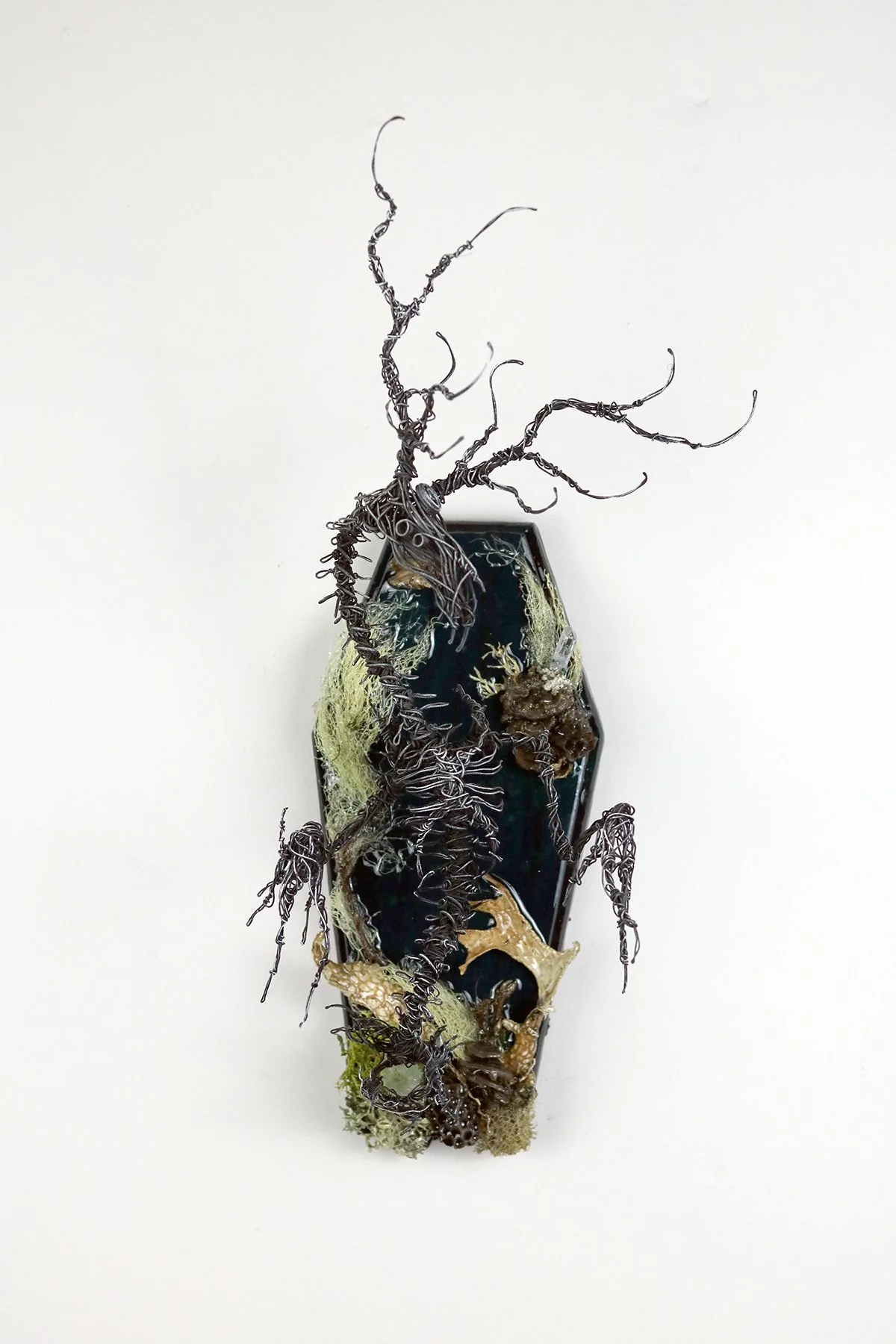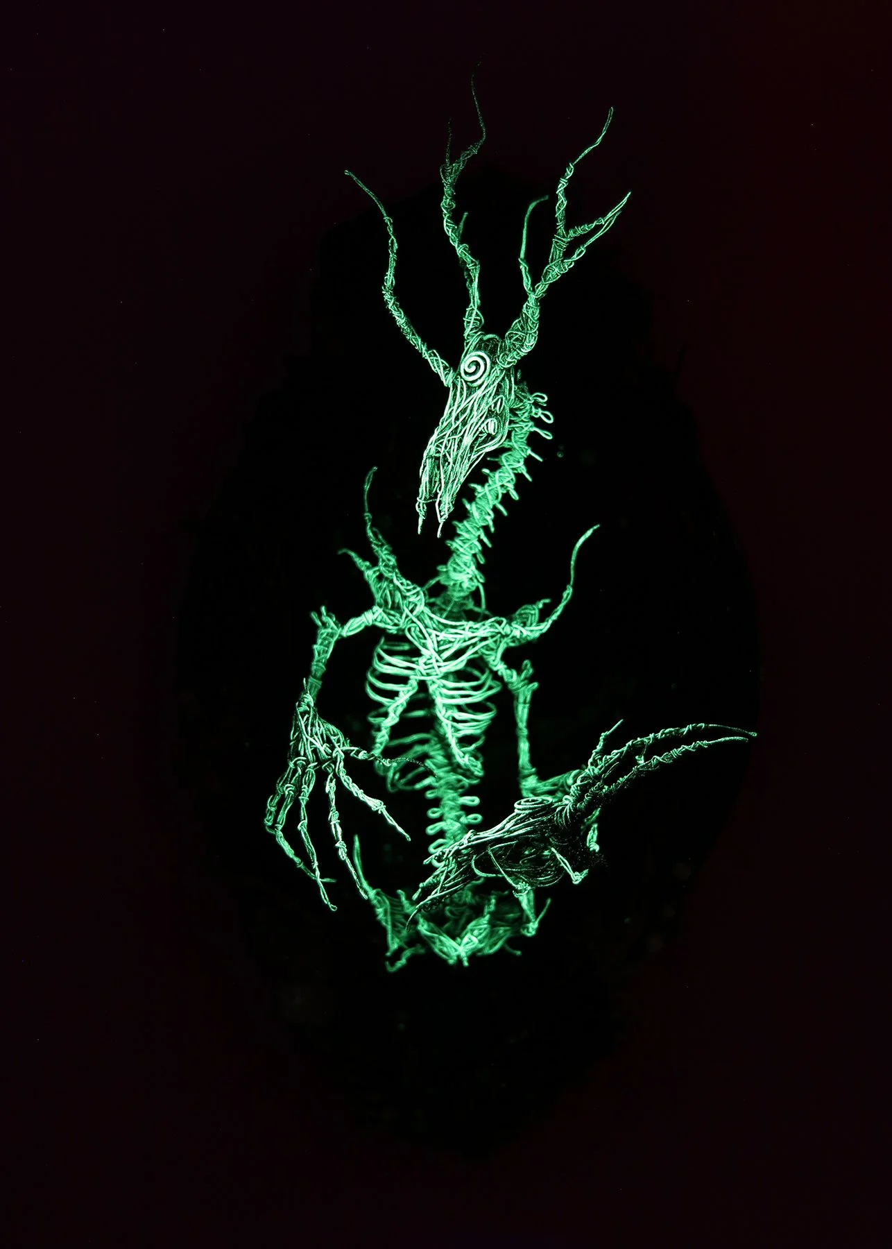 Surrealist wire sculpture & assemblage mounts. A non-animal ossuary of cryptid taxidermy.